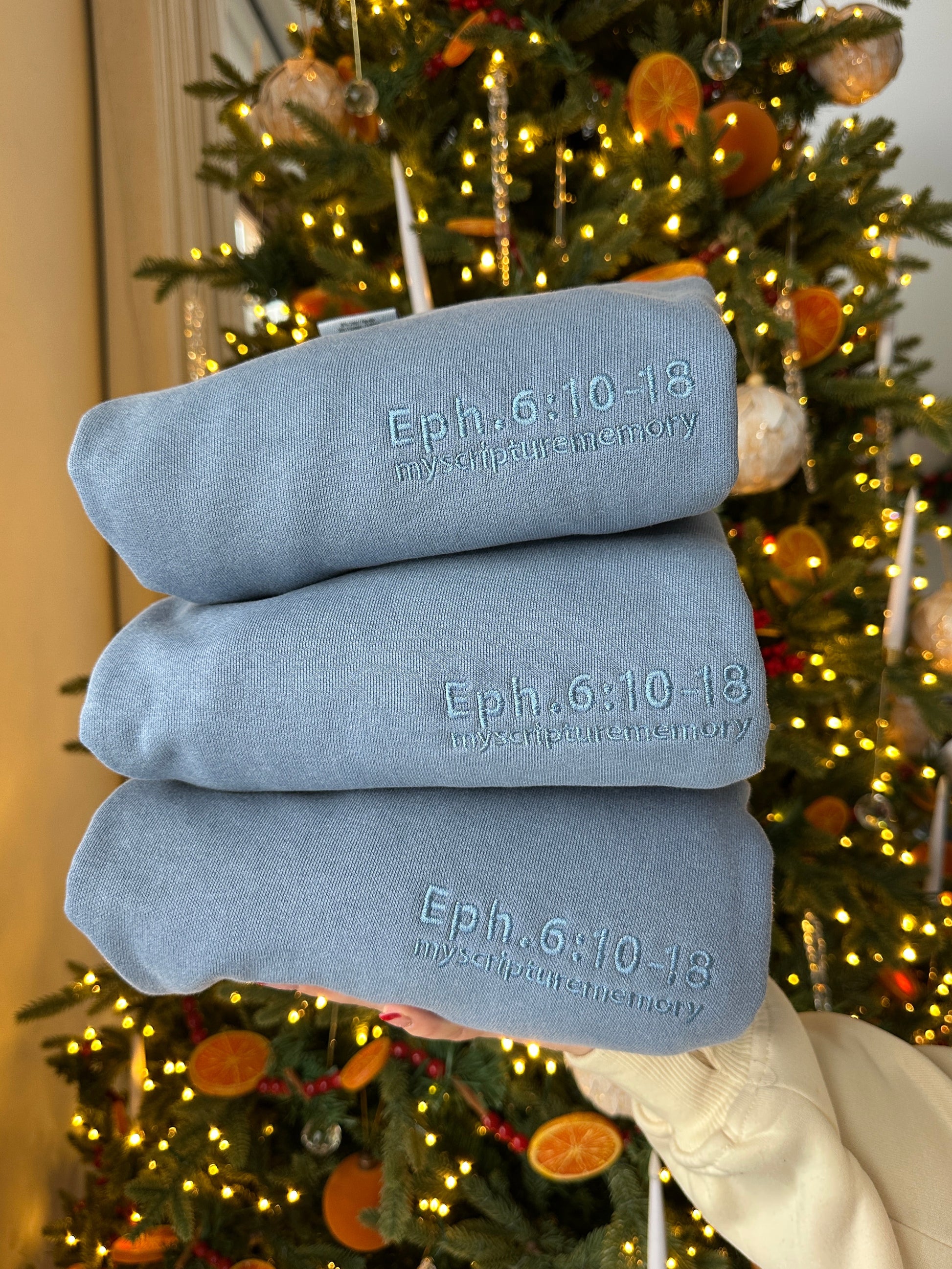 Write Scripture on your heart and wear it on your sleeve! Strengthen your faith while staying warm in this premium Comfort Colors crewneck sweater, featuring an embroidered Scripture acronym of Ephesians 6:10-18 on the sleeve. The soft-washed, garment-dyed fabric blends 80/20 ringspun cotton and polyester for lasting comfort and durability. Double-needle stitched seams, twill taped back neck, and a rolled forward shoulder ensure quality construction. Use the First Letter Method—a proven Scripture memorization technique—to internalize the Whole Armor of God passage. Currently available in ESV and NIV translations.